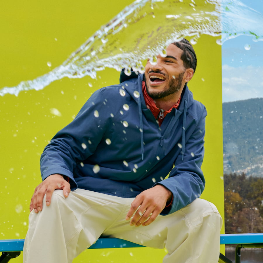 This is our super soft hooded rain jacket. It’s been updated for a better fit and a more tailored feel. Designed for everyday wear — even if you’re not expecting rain.
