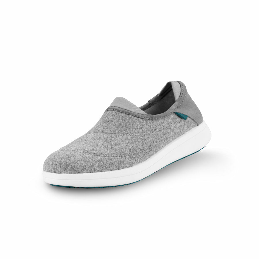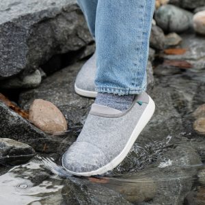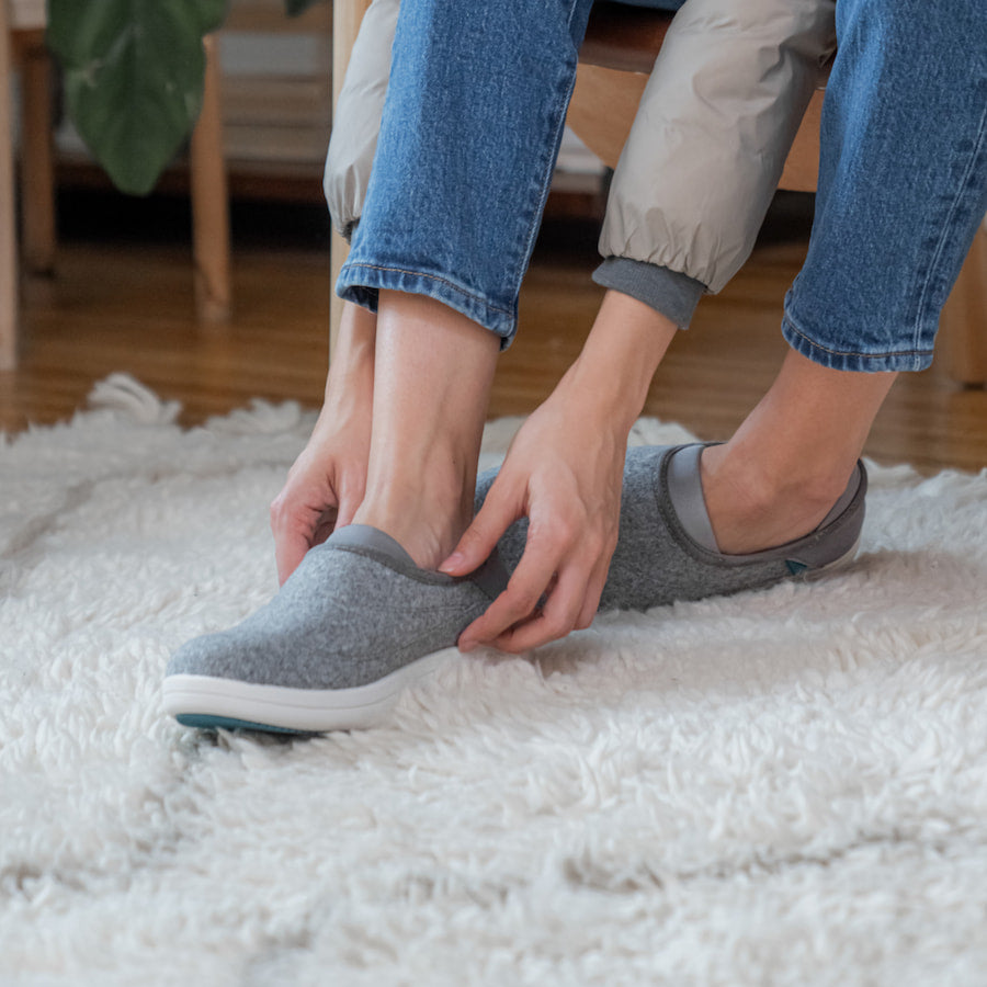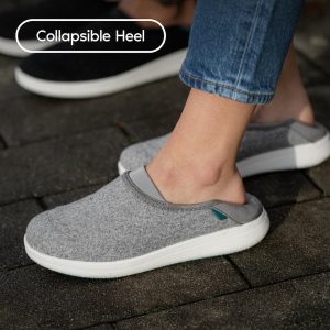 Our versatile slippers sport a collapsible heel and waterproof vegan wool for sustained warmth and comfort. inside and out.